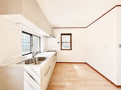 爽やかな風が通り抜けるキッチン。窓があるので明るく換気にも役立ちます