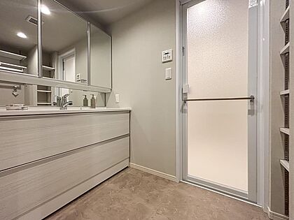 三面鏡で、使い勝手の良い洗面化粧台。鏡部分の中にはキャビネット収納を完備。毎日の身だしなみはここから始まります。