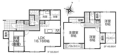 | 建物面積 | 102.75m2 | 土地面積 | 156.94m2 |