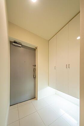 間接照明のフットライトがお洒落な玄関スペース。収納もたっぷりとございます。