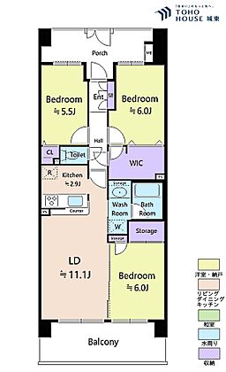 3LDK、専有面積70.56平米、バルコニー面積11.3平米
