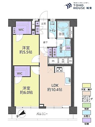 2LDK、専有面積56.7平米、バルコニー面積7.56平米