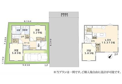 2階建て参考プラン。建物面積:81.71m2、建物本体価格:2000万円(税込)