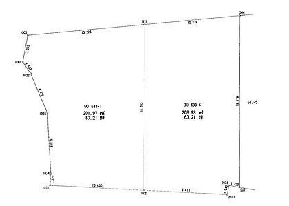 | 土地面積/坪(坪単価) | 208.97m2(登記簿)/63.32坪(13.60万円) | 代表的な接道 | 二方 公道 ※詳細は備考欄をご確認ください |