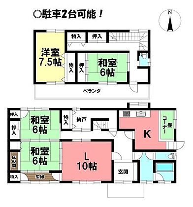 | その他 | ●駐車場2台以上 ●駐車場あり ●所有権 ●2階建て ●木造 ●子育てに便利な施設が充実 |