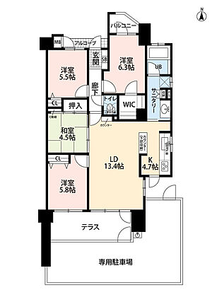 | 間取り | 4LDK | 専有面積 | 86.84m2(壁芯) |