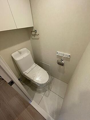 勿論新規交換済みで気持ちよく使えるお手洗い。収納付きで、掃除用品を隠せます。