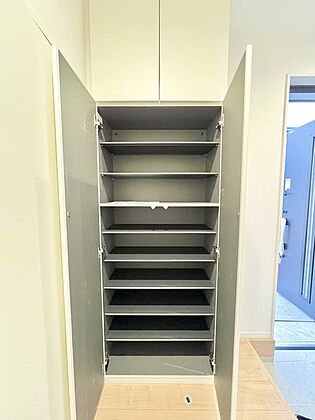 家族の履物が全部しまえる、ワイドな玄関収納。