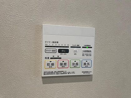 参考プラン・浴室乾燥機リモコン施工例写真 乾燥、換気、暖房、冷房、主に4つの機能が搭載されています。ヒートショックの防止、衣類の乾燥、浴室内の温度調節に便利です。