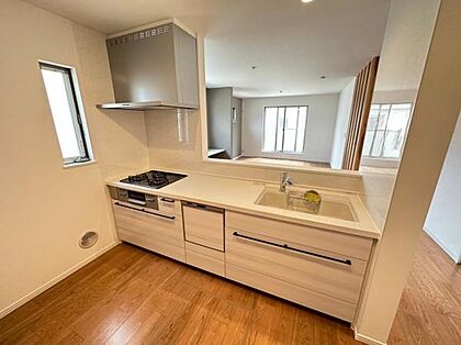 参考プラン・キッチン施工例写真 ご家族や来客とのコミュニケーションが取りやすく人気の対面式システムキッチンです。