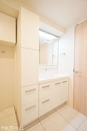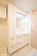 大きな鏡と洗面台が付いた洗面化粧台は収納も豊富!買い置きした日用品などまとめて収納する事が出来ます!