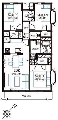 | 間取り | 3LDK | 専有面積 | 66.75m2(壁芯) |