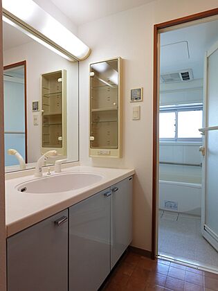 大きな鏡で身支度を整えやすい洗面台と洗面所