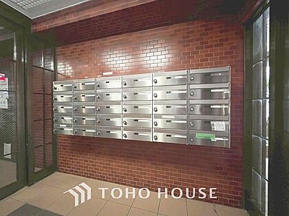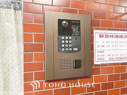 「エントランス入口」オートロック付きのマンション。居室には、来訪者を確認できるTVモニター付きインターホンが完備されているので、安心感があります。