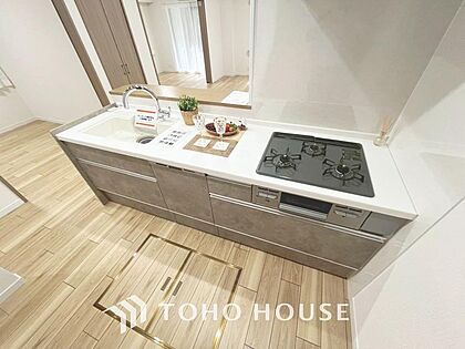 「機能的な収納が豊富なカウンターキッチン。」効率よくお料理ができるコンロ・収納を完備したシステムキッチン。確かな機能性を実感頂けます。