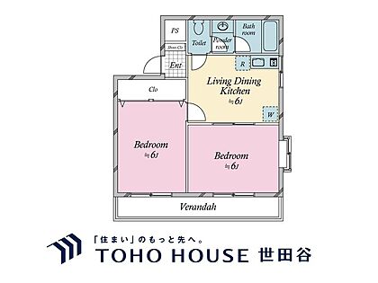 2DK、専有面積35.76m2、バルコニー面積8m2