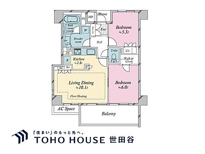 2LDK、専有面積57.51m2、バルコニー面積9.5m2