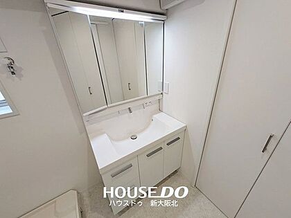 ■嬉しい三面鏡の洗面台!■三面鏡は鏡の角度を変えることで様々な角度からメイクやヘアスタイルを確認することができるので、整容もはかどります!