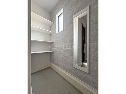 【シューズインクローク】 おしゃれなアクセントクロスに姿見付き☆彡