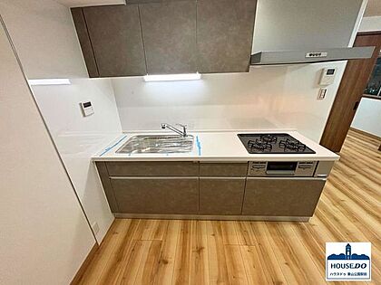 壁に向かって設置されたシンプルなキッチンは、調理中の動線がスムーズで、作業に集中しやすいのが魅力