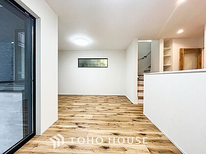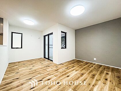 明るく開放的な空間が広がるLDK。室内には豊かな陽光が注ぎ込み、爽やかな住空間を演出。