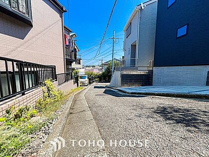前面道路含む現地写真『快適』は「家」と「街」と「環境」が調和した時に訪れるだと改めて感じさせてくれます。