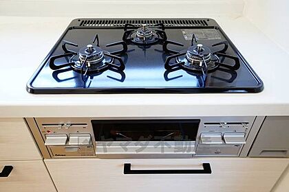 同時にたくさんの料理が調理できる3口コンロ。長時間熱を通しておきたい煮込み料理を作りながら、炒め物など同時進行で進められます。