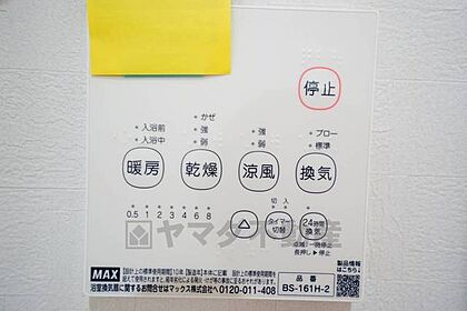 浴室暖房乾燥機付き。天候に左右されず、いつでも好きなときに洗濯物を干せるので、仕事や家事で忙しい方に重宝します。