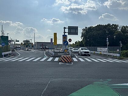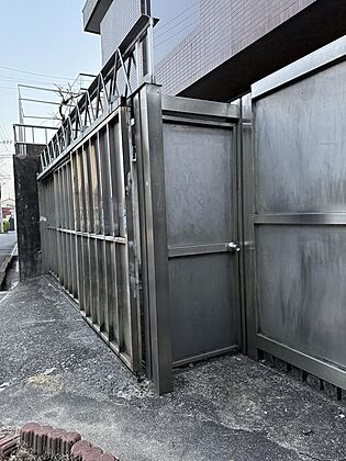 門扉から建物玄関へ続く階段アプローチを西方向へ撮影。