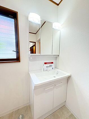 鏡の裏が収納になっているので、洗面台周りもスッキリ片付きます♪