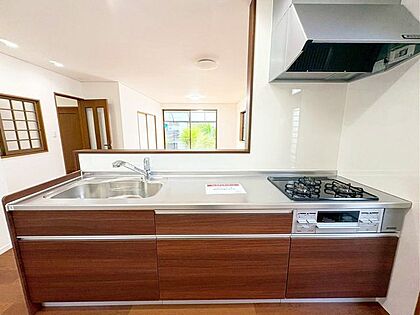 シンクや作業スペースが広々とした作業がしやすいシステムキッチン♪対面式で室内全体を見渡すことができるので小さなお子様やペットのいるご家庭も安心♪
