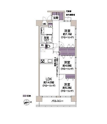 7.1帖の洋室にはゆとりのある収納を完備しており、お荷物の多い方には嬉しい設備です