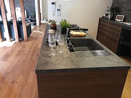 作業スペースが広く家事動線をゆったりと確保できるキッチンです。