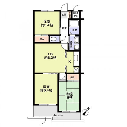 | 間取り | 3LDK | 専有面積 | 61.96m2(壁芯) |