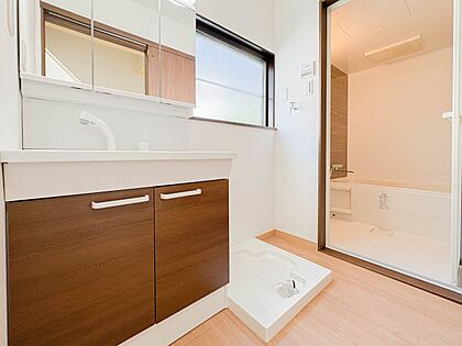 【ランドリースペース】毎日使う洗濯機。しっかりと奥行きのある置き場が確保されています。