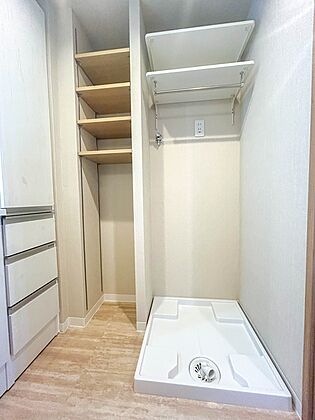 【ランドリースペース】毎日使う洗濯機。しっかりと奥行きのある置き場が確保されています。