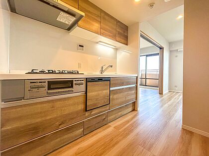 【キッチンLDK11.0帖】 三口コンロで料理の幅を拡げてくれる使いやすいシステムキッチンを採用。洗い場も大きいので野菜や食器を洗ったりする際にも捗り、奥様の強い味方となってくれるはずです。…