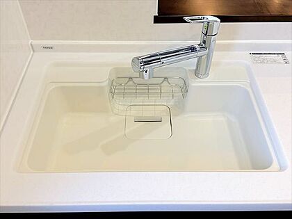 •  キッチン:ワイドシンクなので大きめのお鍋や食器などを一気に洗うことができます。作業スペースも広くお料理の段取りもよくなりそうですね。