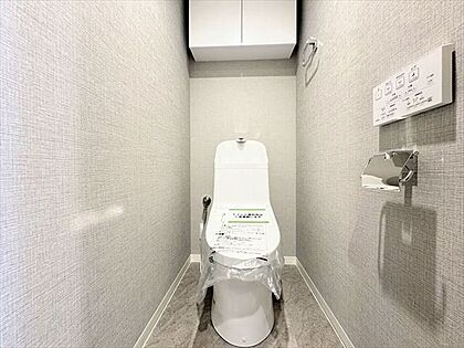 •  トイレ:リモコンタイプの温水洗浄便座で便座周りはスッキリ。タオル掛けやペーパーホルダーが備え付けられています。