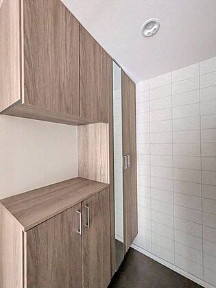 姿見付きのシューズボックスは出かける前に全身を確認できるため、服装や靴のコーディネートを整えるのに便利です。