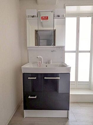 三面鏡付き洗面台は合わせ鏡ができるので、後ろの髪型までチェックできます♪