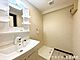 鏡の両サイドに台が付いた洗面所です。毎日の身支度や小物の整理がしやすく、使い勝手も快適です。