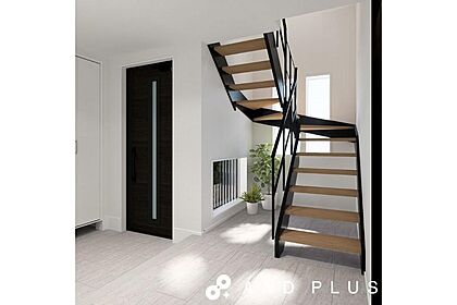 ◇Image◇広々と設計した玄関からすぐ目に入る鉄骨階段。玄関ホールにはタイルをあしらい、足元から上質な空間を演出します。階段の洗練されたデザインが空間をつなぎ、開放感と高級感を一層引き立てます。