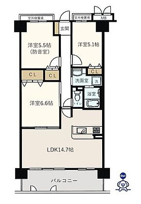 間取り 3LDK 専有面積 66.79m2(壁芯)