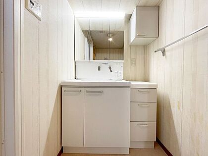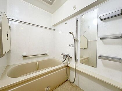 ゆったりサイズのシャワー付きバスルームです。また、浴室暖房乾燥機付きで雨の日のお洗濯も困りませんね!