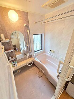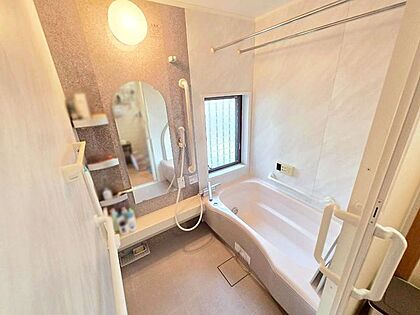追い焚き機能付きなので、家族の入浴時間がバラバラでもあったかポカポカです♪浴槽横には手すり付きで、入浴時により安全です♪