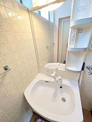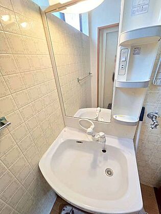 シャンプードレッサーつきの洗面スペースです。ホワイトのタイルが清潔感を感じさせます♪
