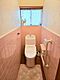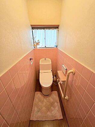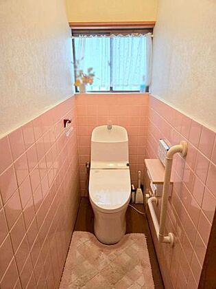 ピンクのタイルが清潔感のある空間に見せる、トイレです。お手入れが丁寧にされています♪