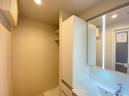 手元を照らしてくれる関節照明!広く使いやすい洗面台♪