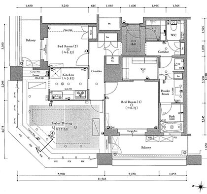 | 間取り | 2LDK | 専有面積 | 93.29m2(壁芯) |